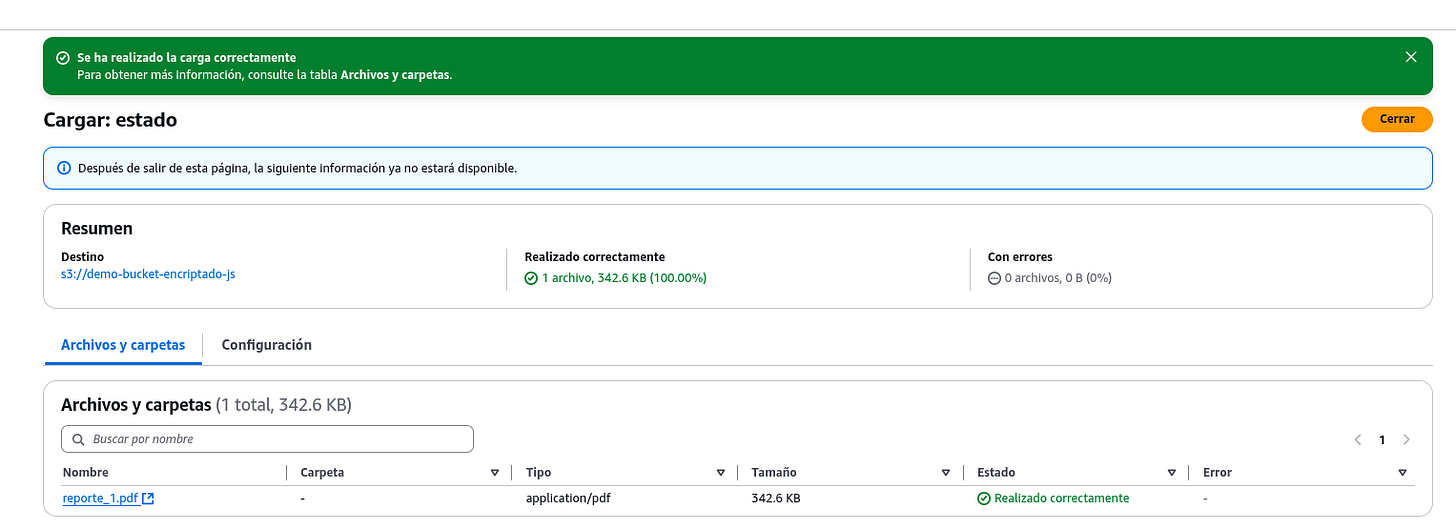 Ten presente que la seguridad en la nube es una responsabilidad compartida: AWS proporciona una infraestructura segura y las herramientas adecuadas, pero tú eres responsable de configurar y gestionar adecuadamente el cifrado de tus buckets.