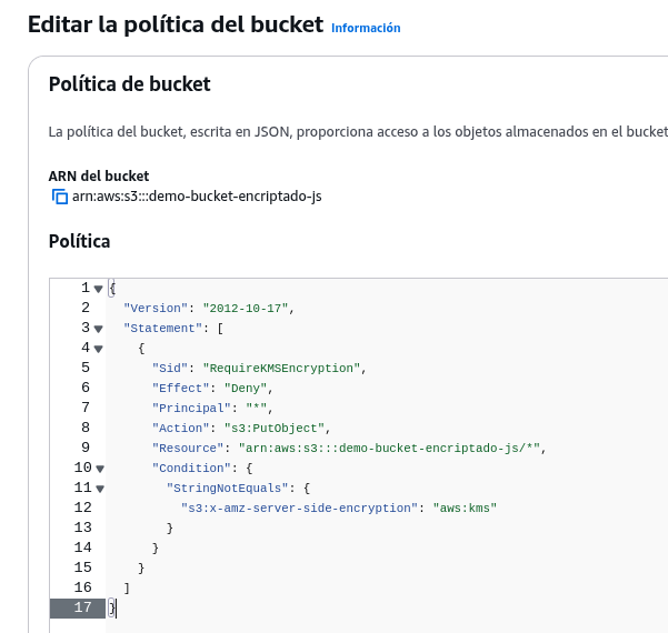 "Resource": "arn:aws:s3:::demo-bucket-encriptado-js/*",